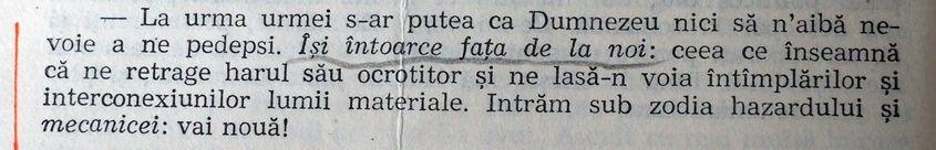 Ideea e că, în chiar trecere, există o viață. Ține de demnitatea noastră umană de-a ne disloca. Trebuie să pornim pe drum, iar pe drum, undeva între un pas și celălalt, s-ar putea adăuga și Dumnezeul pasajului, Dumnezeul drumului, care nu mai e Hermes, ci este Hristos.