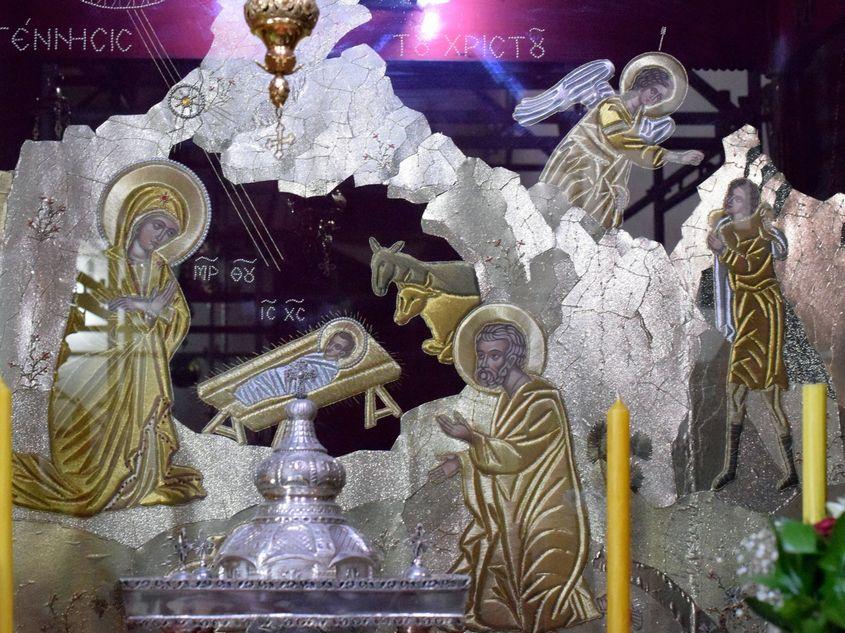 În altarul unde se află steaua de argint marcând locul zero al nașterii, preoții încearcă să țină o slujbă. În semicerc, pe scări, peste tot, înghesuindu-se ca la rugby, oamenii se bat pentru un unghi cât mai bun și filmează cuprinși de un soi de transă mistică.