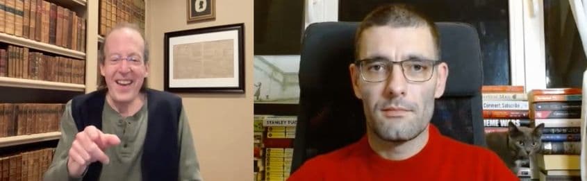 Trebuie să zic că, în privința cărților pe care le vezi aici, în spate, și a celor din biroul meu, da, unele dintre ele sunt cărți de natură, dar majoritatea nu. Tind să fie mai mult despre filozofie, istorie politică, științe politice, în principal de la finalul secolului 18, pentru că este o perioadă care mă interesează în mod special. Aceasta este o colecție de zece volume de la începutul secolului 18, de un tip pe nume Bayle. Este, practic, prima enciclopedie a Iluminismului. Aici îl am pe Denis Diderot, un alt nume foarte important din Iluminism, de la mijlocul anilor 1700. Cărțile mele mai vechi tind să fie din aceste categorii. Dar am și eu rafturile mele cu Darwin, Huxley, Haldane și ceilalți.