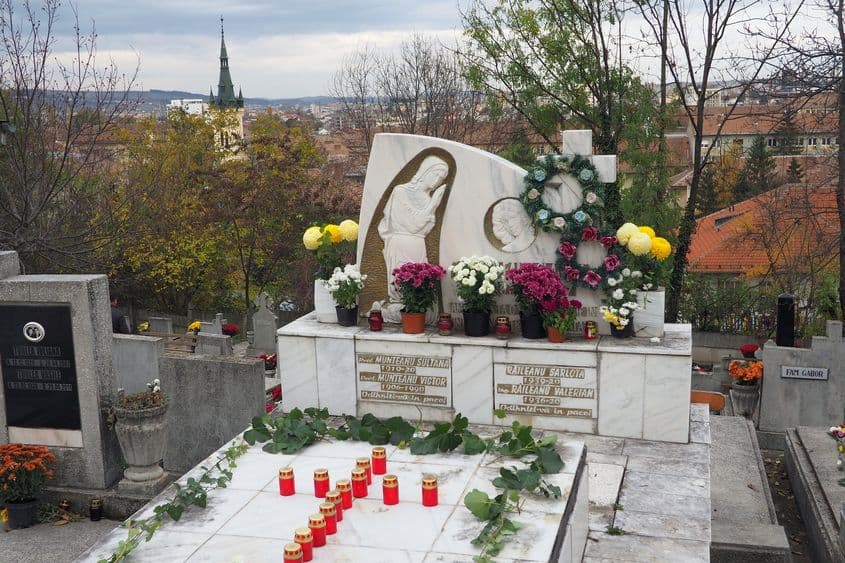 Apoi ar fi povestea Claudiei, care are un mormânt superb, de marmură alb-sidefie, plin de flori și candele roșii aranjate în cruce pe capac.