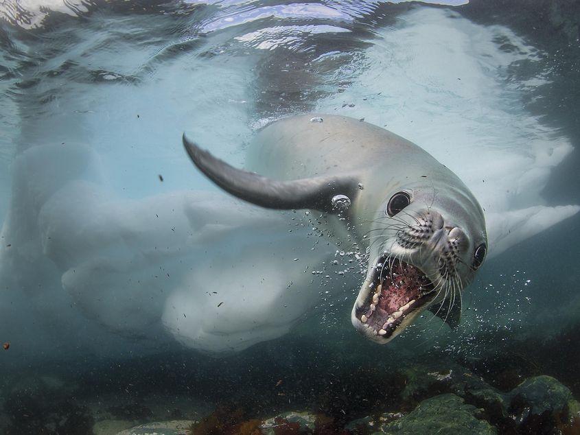 Aproape 80.000 de animale mari se înghesuie pe ce le-a mai rămas accesibil din zona de coastă, se caţără pe faleze ca să nu se sufoce sub presiunea celorlalte corpuri și, de acolo, de sus, ca şi cum această planetă nu le mai încape, cad şi se zdrobesc de stânci, transformând plaja într-un cimitir descoperit.