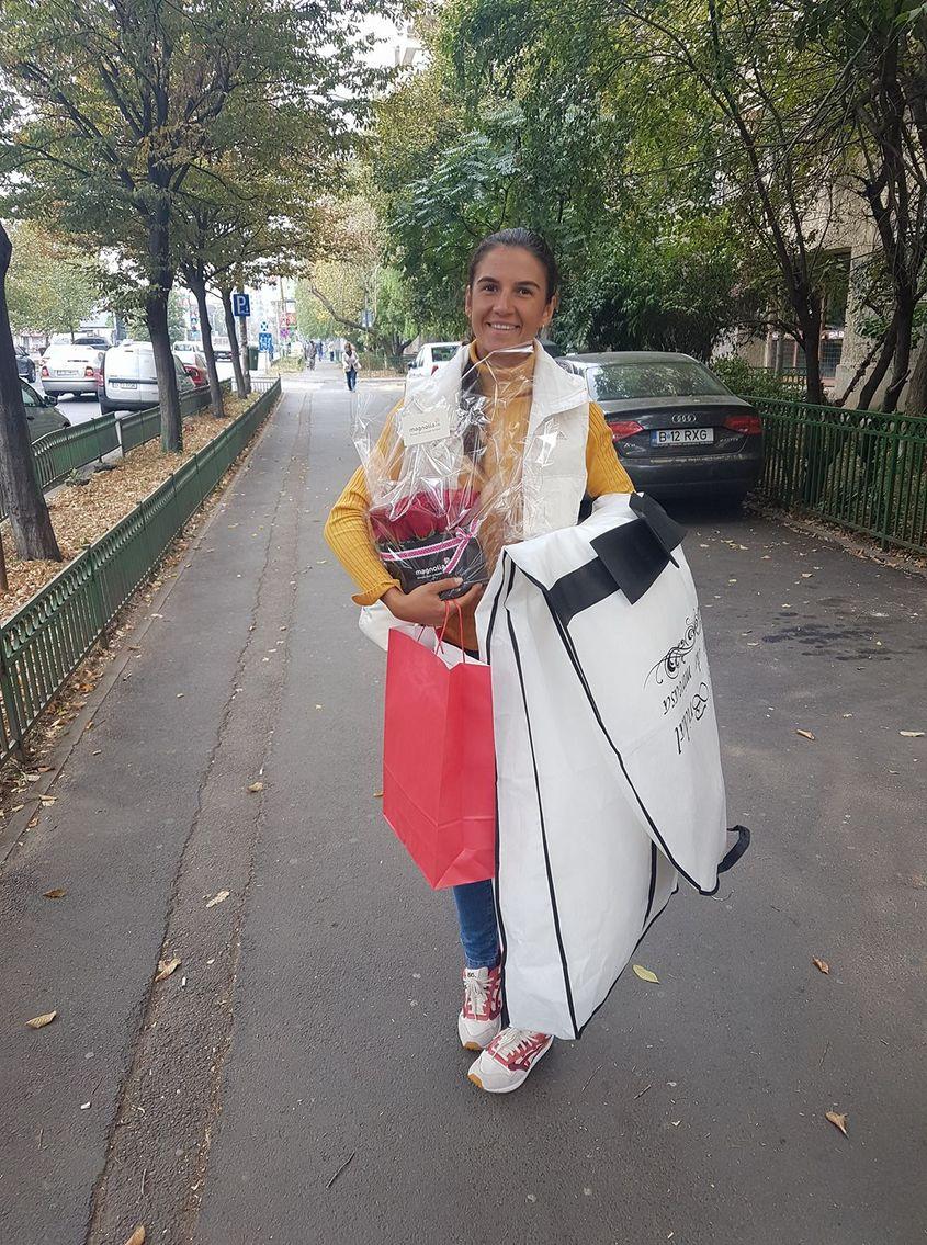 Gianina Beleagă a primit un buchet imens de trandafiri din partea prietenului ei, după aurul mondial. Foto: Arhiva personală