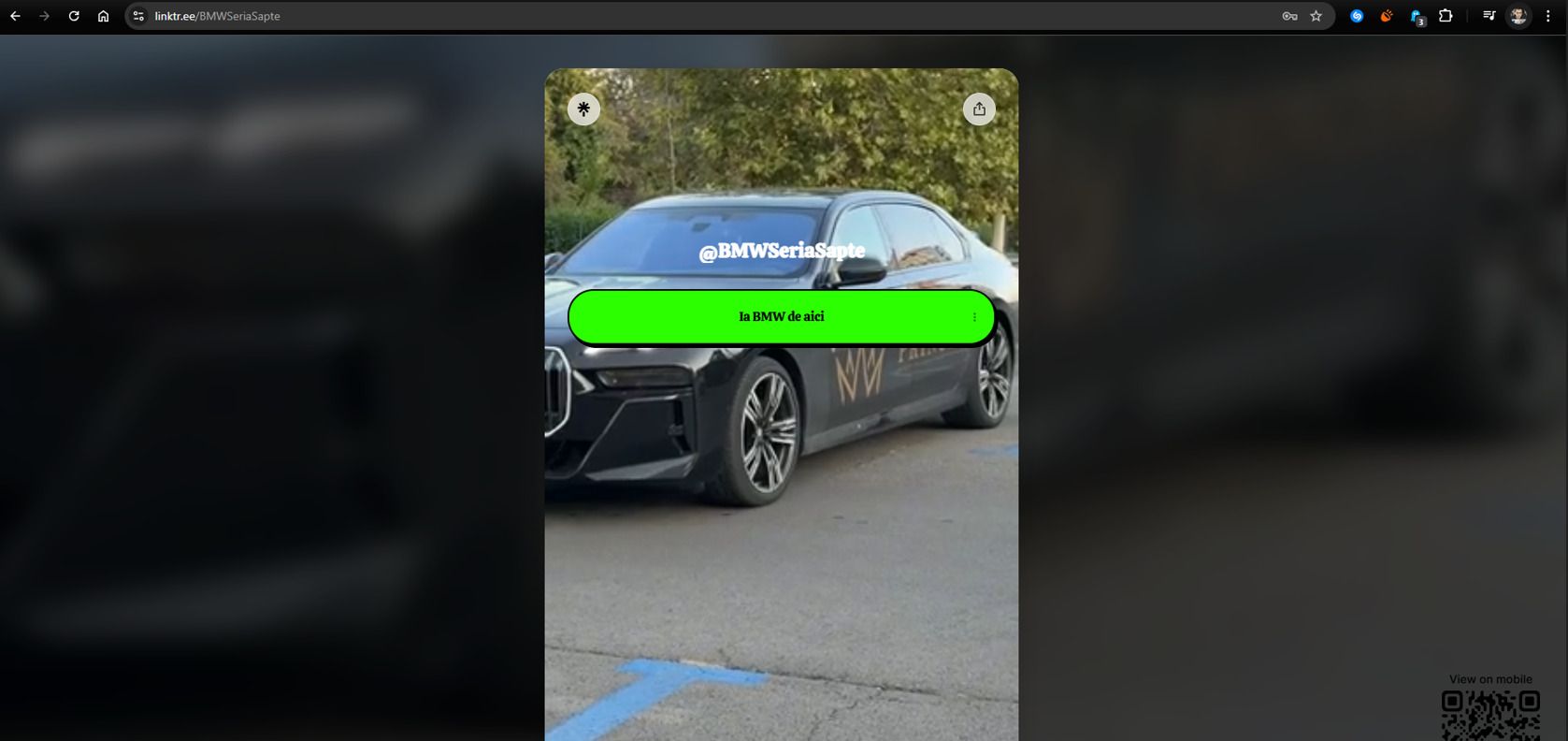 „Dacă vrei BMW-ul ăsta seria șapte, intră pe link-ul de la profilul meu și cine știe, poate fi al tău”, îi încurajează influencerul pe urmăritori în secvența introdusă spre finalul clipului.