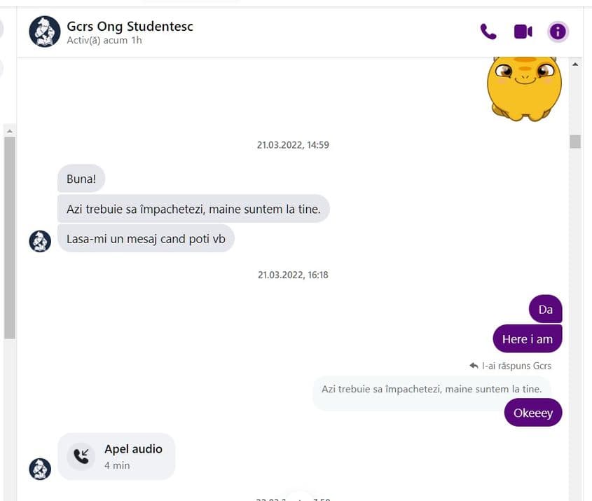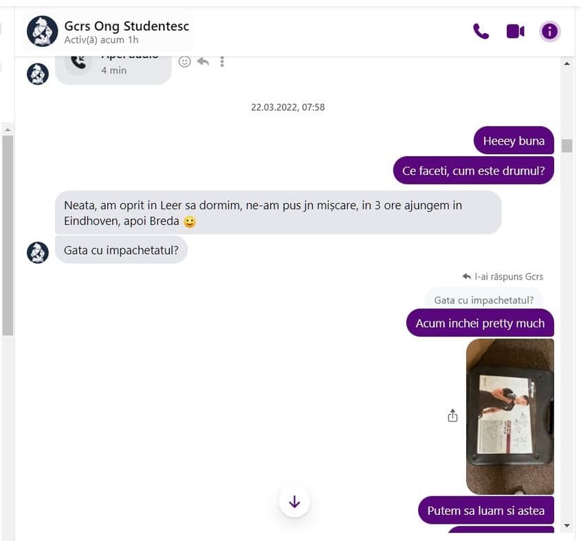 Capturile de ecran puse la dispoziție de Alex spun altă poveste. În ele se vede cum ONG-ul le scria la jumătatea lunii martie a anului trecut că le va căuta cazare în Suedia celor doi studenți români.