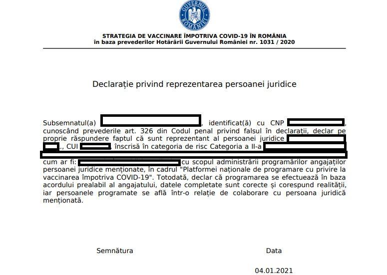 După ce reprezentantul urcă acest fișier în sistem, va putea face programări la vaccinare pentru el și restul angajaților din instituție.