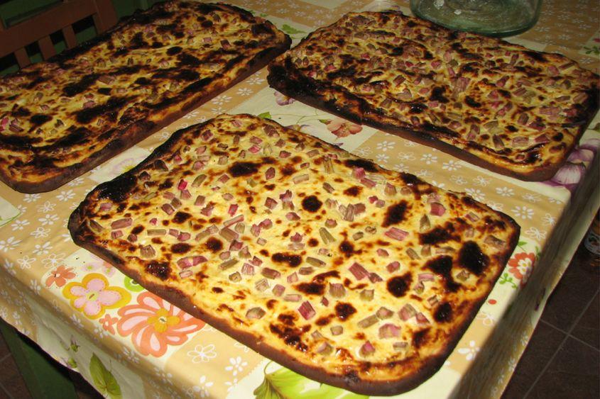 - peste smântână se poate adăuga rubarbă tăiată cubulețe mici și amestecată cu zahăr, caise desfăcute în două și puse cu interiorul în jos;