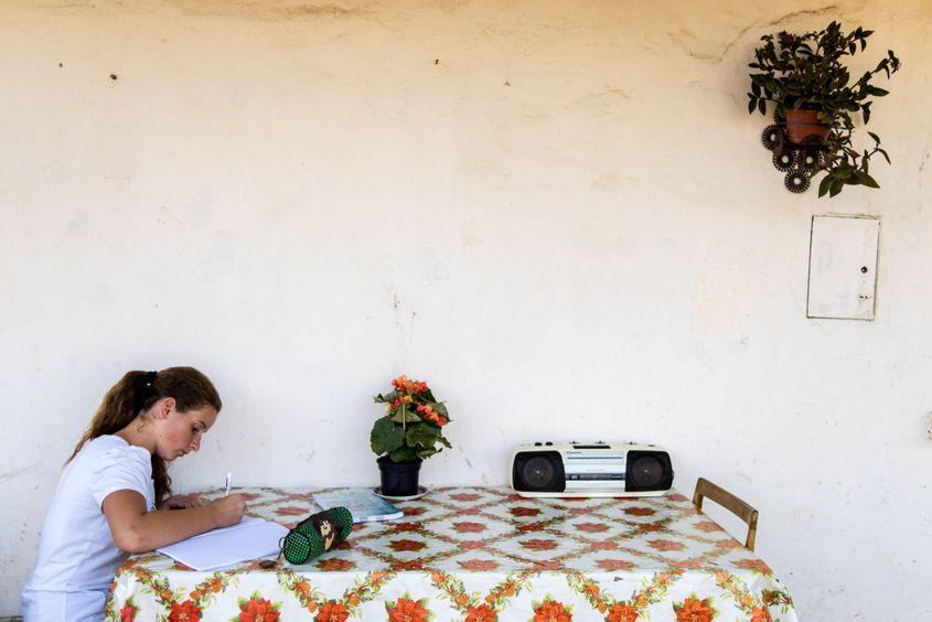 Vara, Elena își face temele în curtea casei, iar iarna lucrează în bucătărie sau în cealaltă cameră, care are dimensiunile a două vagoane de dormit.
