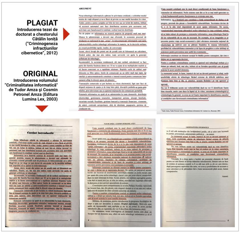 Vă prezentăm, în continuare, o ilustrare a ceea ce refuză să admită membrii Comisiei de Etică din Academia de Poliție: că șeful DGA își aduce contribuția științifică la „Criminogeneza infracțiunilor cibernetice”, în anul 2012, copiind mot à mot, în introducerea tezei sale de doctorat, dintr-o carte apărută în 2003 (an în care ne conectam cu toții prin dial-up și nu existau nici 3G, nici Facebook, nici Youtube, nici Wikileaks, iar Dark Web abia apăruse).