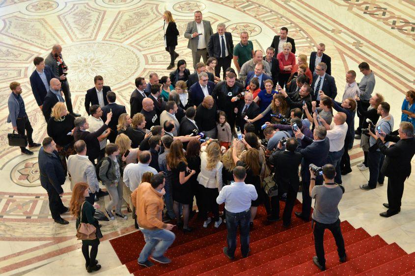 Mike Tython a fost athaltat de jurnalithti în timpul vizitei la Palatul Parlamentului. Fotografii: Lucian Muntean