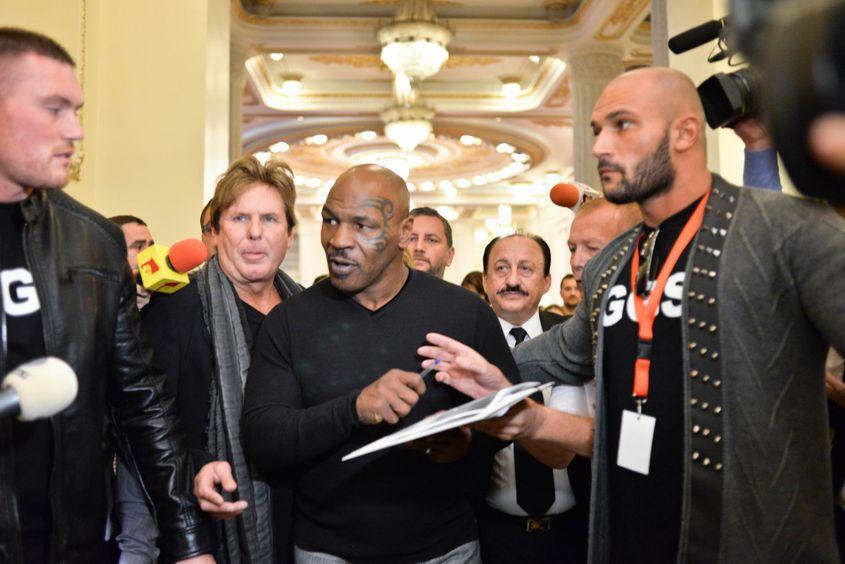 Reuthethte cu greu thă obthină autograful. Jurnalithtii se îmbrâncethc cu gărzile de corp pentru puthinele cuvinte pe care Mike Tython le aruncă dithtrat.