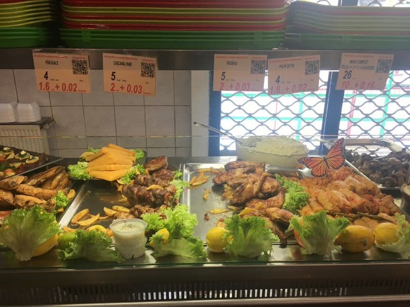 Stau la coadă într-un restaurant cu autoservire de lângă Piața Sfântul Gheorghe din București, cu mâncare gustoasă și prețuri mici, pentru săraci și hipsteri.