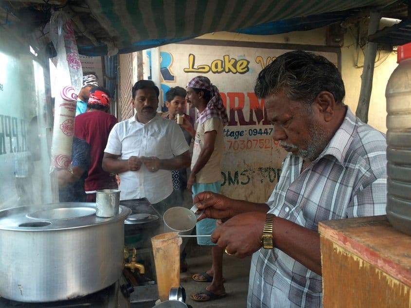 În sudul Indiei, totul e mai picant decât în alte părți, iar ceaiul se servește într-un pahar de inox așezat într-un castronel înalt, ca să-l răcești tot turnând dintr-unul în altul.
