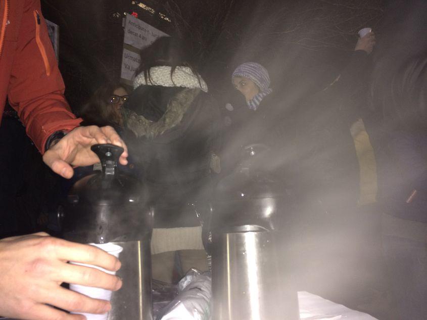 Sunt oameni în Piața Victoriei care, de la începerea protestelor, fac câte patru-cinci ture pe seară ca să le ducă oamenilor ceai fierbinte.