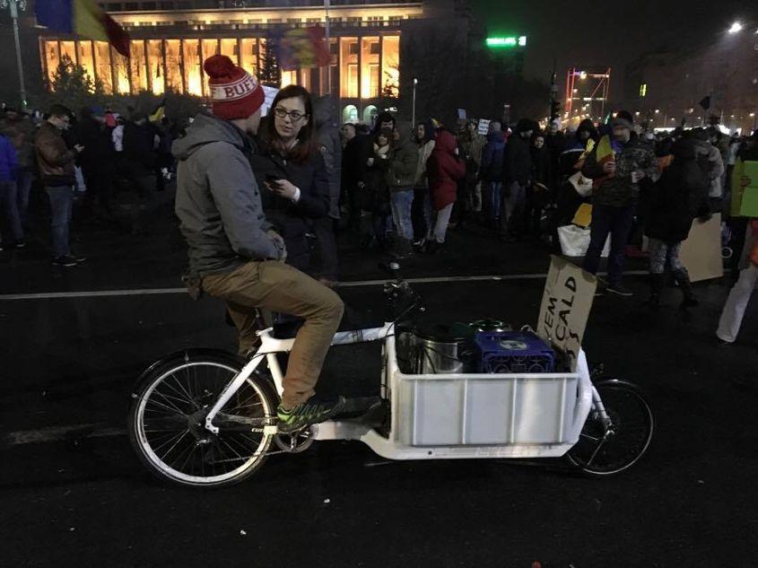 „În prima seară mi-a fost foarte frig și m-am gândit că ar fi bine să aduc un termos pentru oamenii de aici. La început am venit cu un Tico, dar nu puteam parca decât foarte departe și nu a fost eficient. Pe urmă, băieții de la Atelier, cu care sunt prieten, s-au oferit să mă ajute.”