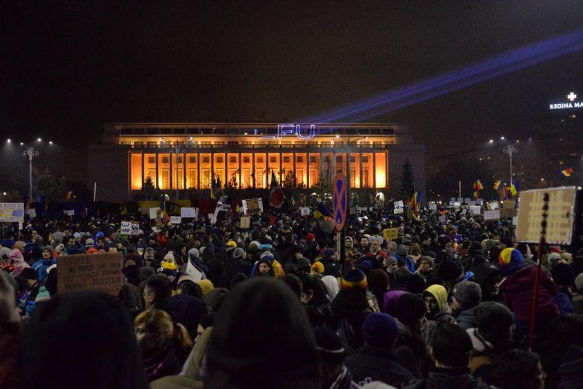 Deși, cu câteva ore înainte, Cabinetul condus de Sorin Grindeanu adoptase o Ordonanță de Urgență pentru abrogarea celei de modificare a legii penale, clădirea Guvernului a fost punctul de reper al celei mai ample manifestații de protest de după 1989.