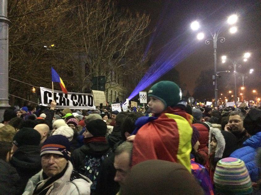 Familia îi așteaptă în Piața Victoriei: un furnicar de oameni cu telefoanele în aer, cu pancarte la subraț și cu termosurile pregătite pentru încă o seară friguroasă.