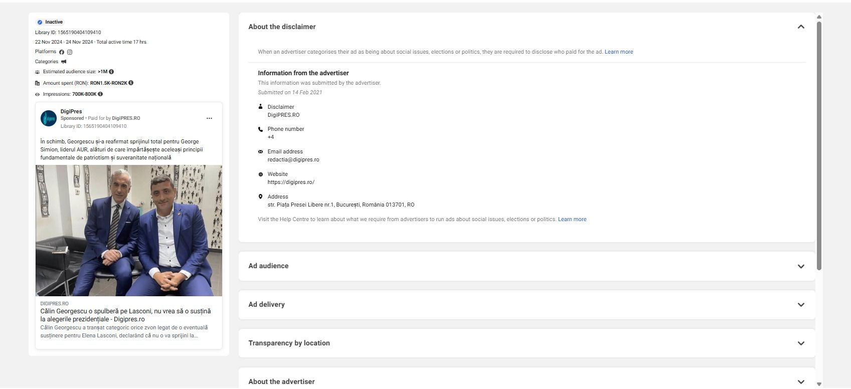 Uleia nu este singurul care răspândește minciuna respectivă. În aceeași zi, publicația info-sud-est arată că mai multe site-uri fantomă propagă mesajul că George Simion e susținut de Călin Georgescu, care s-ar fi retras din cursă. 2 dintre ele sunt deținute de Dgi Multimedia Design, firma Doinei Grosu - o apropiată a lui George Simion, conform unei investigații Context.ro. Narațiunea este promovată inclusiv prin postări sponsorizate pe Facebook.