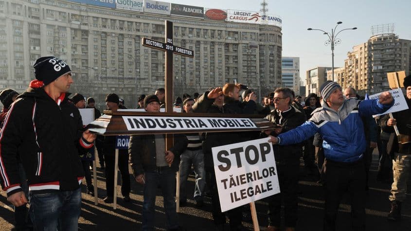 Un alt vorbitor la protestul din Piața Victoriei este Constantin Tobescu, vicepreședintele Federației Proprietarilor de Păduri și Pășuni Nostra Silva. El spune că, de două luni, industria lemnului din România este în criză.