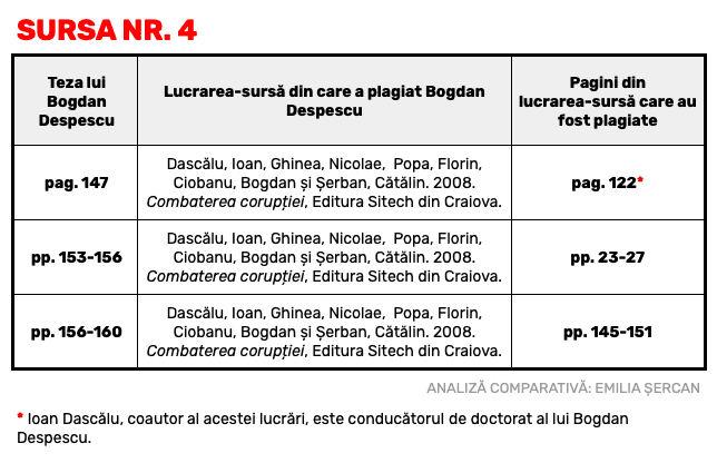 Alte 9 pagini din teza chestorului Bogdan Despescu sunt plagiate din cartea „Combaterea corupției”, semnată de Ioan Dascălu, Nicolae Ghinea, Florin Popa, Bogdan Ciobanu și Cătălin Șerban, care a apărut în anul 2008 la editura Sitech din Craiova.