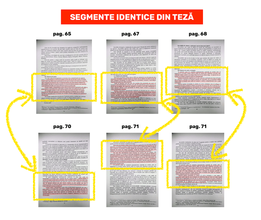 Astfel, trei paragrafe de la pagina 65 din teză, copiate din referatul „Corporațiile transnaționale”, sunt copiate din nou la pagina 70 din teză.