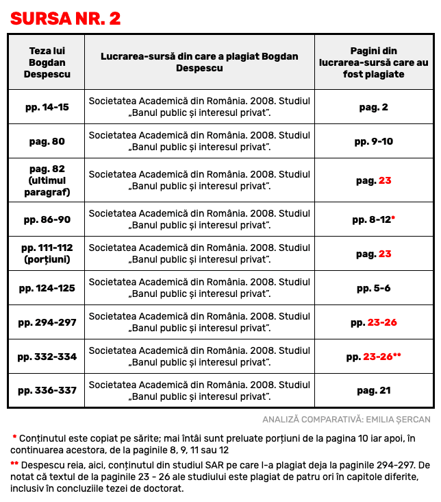- în teza sa de doctorat, susținută acum un deceniu, Despescu a copiat din diverși autori - cuvânt cu cuvânt - peste 150 de pagini