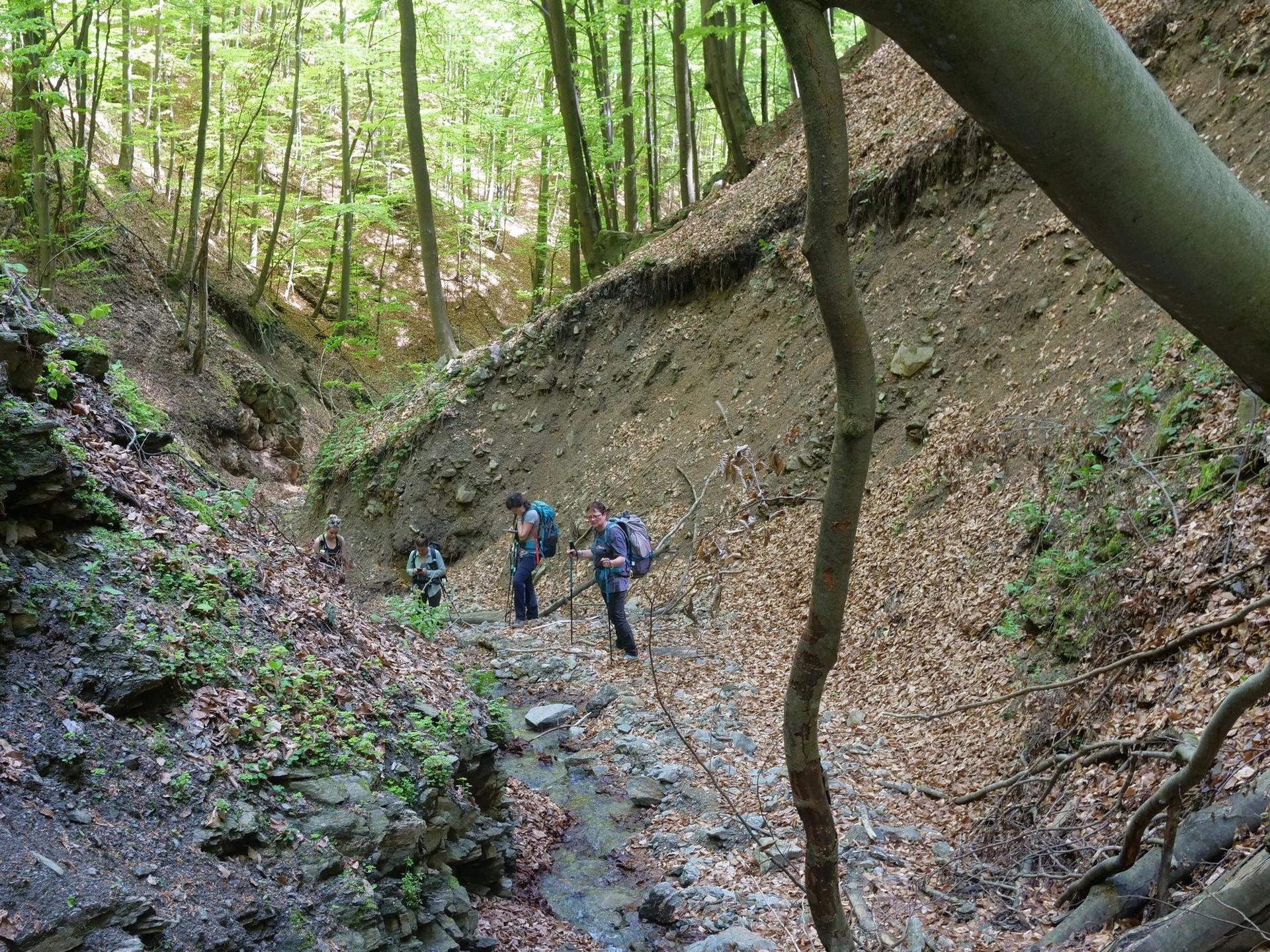 Se regăsește traseul bun pe smartphone. Bețele de trekking se înfig în drumul care se încăpățânează să tot urce. Se gâfâie, prilej cu care Ana o citează pe Efti cu expresia devenită clasică: "Mai bine să gâfâi, decât să scârțâi". Pădurea prin care urcăm acum e îmbrăcată în verde crud, iar poteca e toată pătată de soare și umbre, ca o blană de leopard întinsă la nesfârșit. Miroase a primăvară și a pământ reavăn. E un parfum tonic, de început de lume nouă.