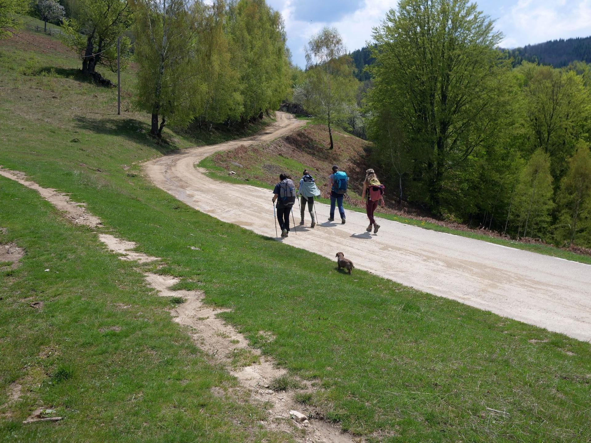 În câțiva kilometri mașina e lăsată pe o vale, urmând să fie preluată de niște binevoitori. În Fundătura Ponorului ne vor aștepta așadar: mașina cu saci de dormit și haleală, binevoitorii, plus o echipă de reporteri de la TVR Timișoara, care vor să producă un material despre aventura Echipei Fetelor. Dar până acolo avem cam 20 de kilometri de umblătură și mai deloc pe drum drept.