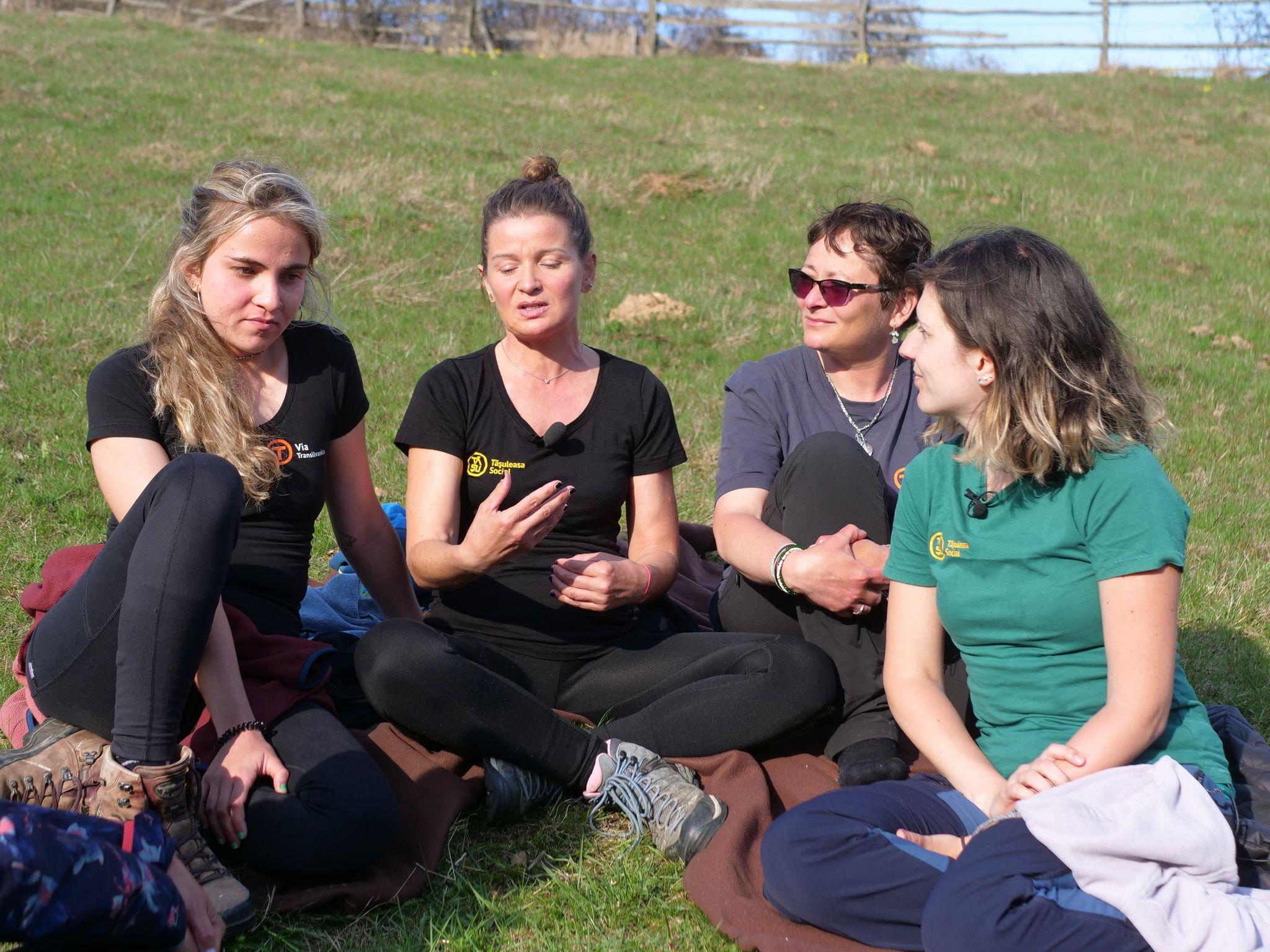 Echipa de la TVR Timișoara e pregătită pentru emisiune. Acum hrănite, fetele dau un interviu simpatic despre misiunea lor pe Via Transilvanica, un dialog destins, cu multă voie bună și autoironie.