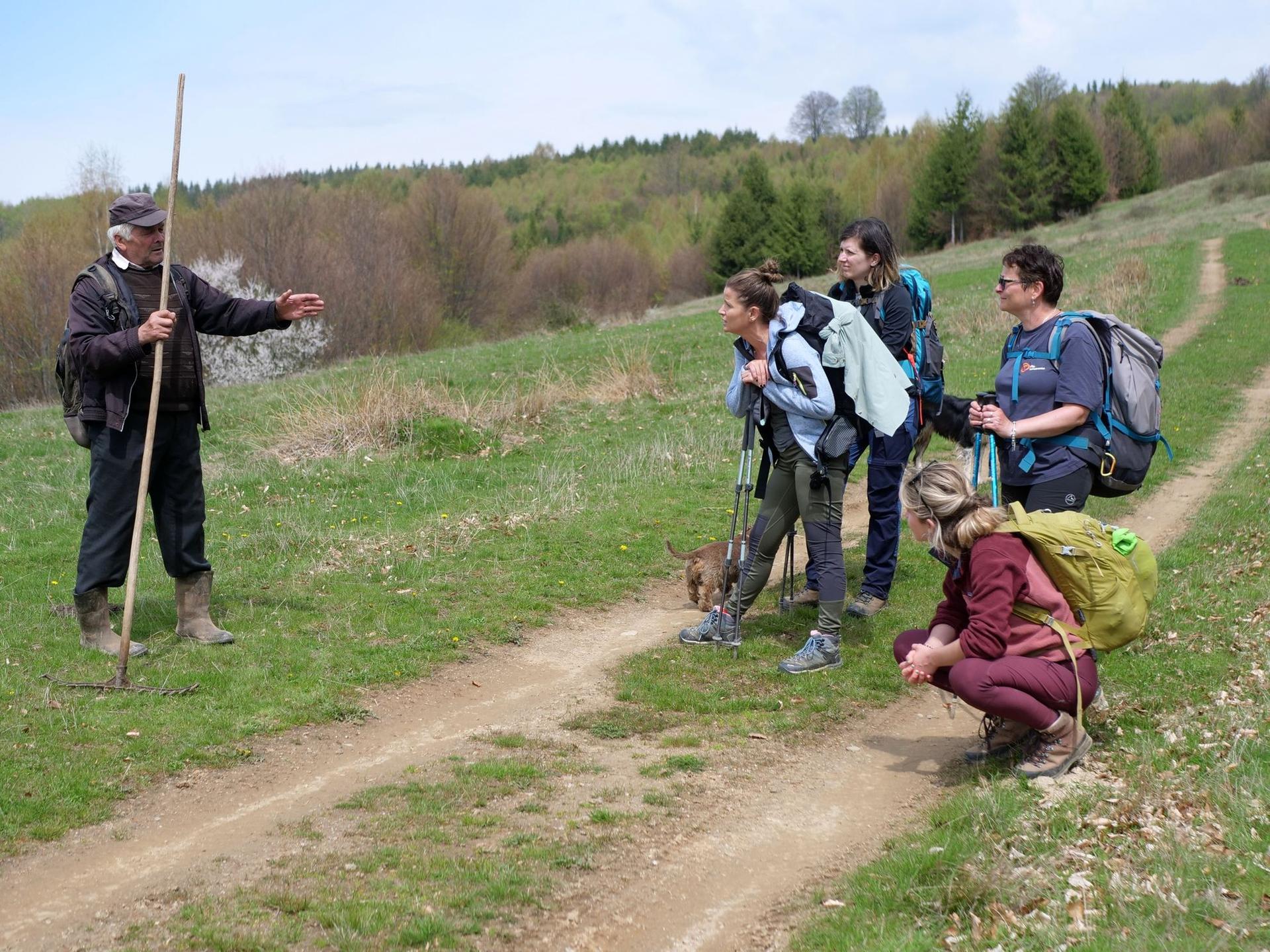 În rest, continuăm cu o lungă preumblare sus-jos prin locuri cu denumiri specifice zonei, cum ar fi ponoare, ohabe și sălașe. Gospodăriile locuite sunt rare, oamenii puțini dar însetați să schimbe o vorbă cu oricine despre orice. Un om cu o greblă și un cățel povestește despre iarbă și fân, parcă singurele lucruri importante pentru el. Tot ce îi spunem noi despre drum și turism i se pare abstract.