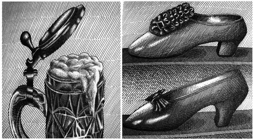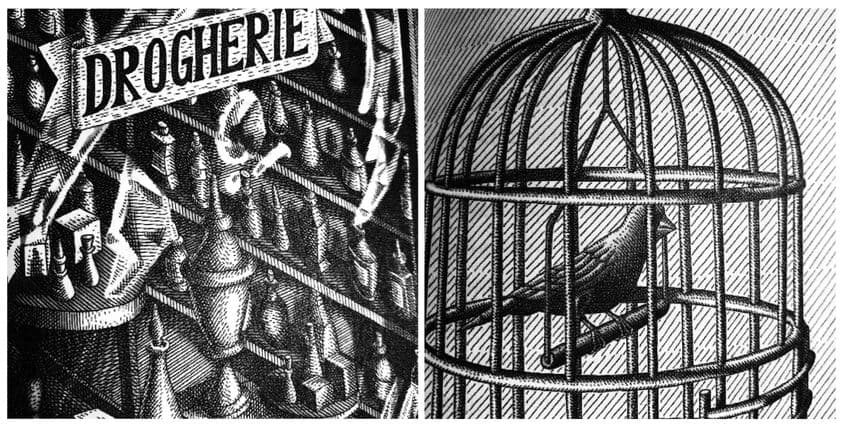 sau fascinația lui de a descrie diverse cosmeticale expuse în vitrinele drogheriilor, cum ar fi „loțiunea pentru păr Cyrano, care avea o etichetă cu o nimfă ieșind dintr-un lac, cu trandafiri în jurul taliei și scântei și stele pe spate, ceva absolut splendid! frumoasă ca muzica lui Mozart”…