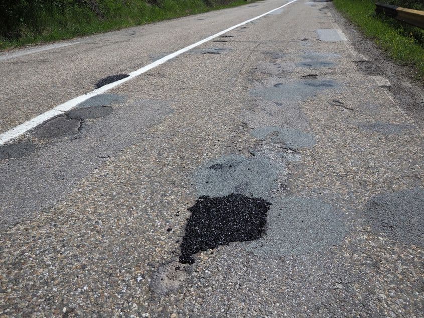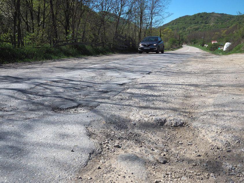 De la ieșirea din județul Cluj și până adânc, în Țara Moților, drumul e o salbă de gropi mari și mici, crăpături și margini surpate în care, anual, autoritățile mai toarnă umplutură: uneori bitum, alteori doar pietriș.