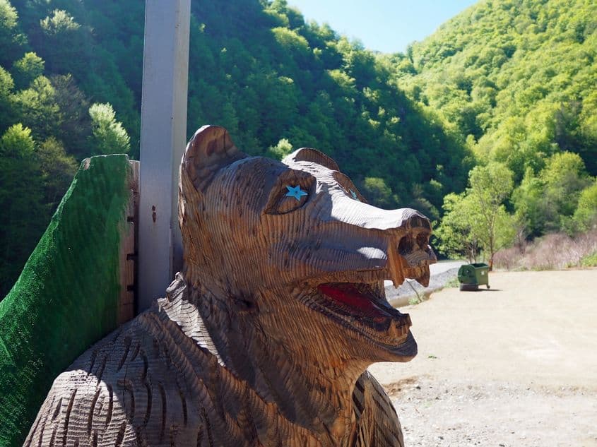 Până la izvor, alunecând printre serpentine, ai impresia că, mergând înainte, te întorci în trecut: asfaltul găurit se multiplică la infinit și bucățele din șosea au făcut deja „burtică” de la petecele de bitum turnate unele peste altele, vară de vară, în cariile drumului.