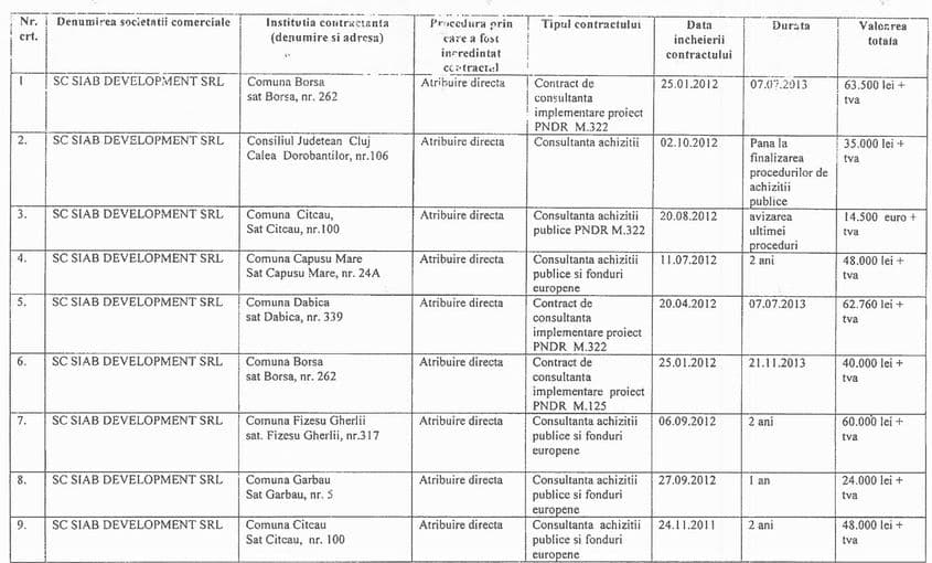 Dealtfel asta se poate vedea în lista de contracte încheiate: consultanța pentru achiziții publice pe care Siab o oferea în schimbul a zeci de mii de lei în anii anteriori este redusă la contracte de câte 3000 de lei.