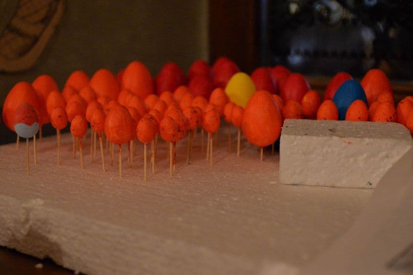 Săvârșim aici, sâmbăta, Ateliere de bucurii. Copiii fac cu mâna lor cadouri, le confecționează. Uitați, aveți aici ouă făcute de copii!