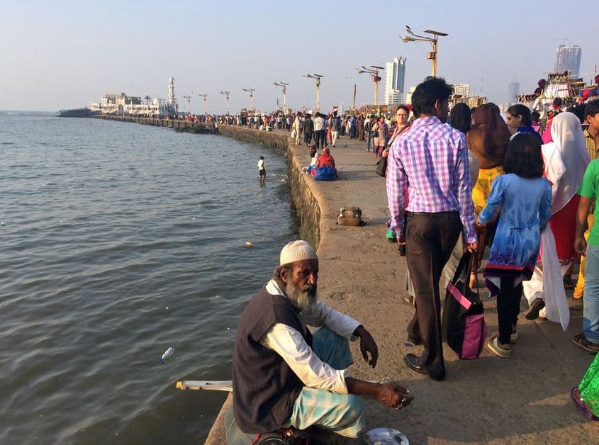 (Ali Dargah, o moschee construită în 1431 pe o mică insulă din golful Worli, e unul dintre locurile sacre ale musulmanilor din Mumbai. În timpul fluxului, moscheea pare că plutește pe Marea Arabiei. Acolo, la slujba de vineri se perindă zeci de mii de credincioși. O mână de muzicanți cu instrumente tipic indiene continuă o tradiție a cântăreților pelerini.)