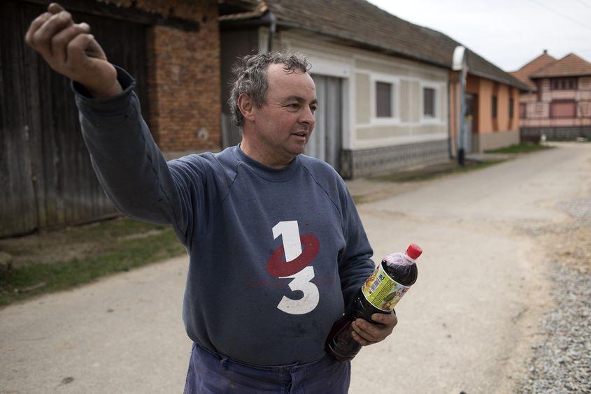 Tovarășul lui Victor se amestecă în discuție. Are în mână o sticlă de vin roșu. Ne invită la un pahar. „Ăsta-i natural, nu găsești la crâșmă așa ceva”.