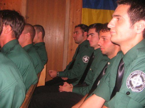 George Bara (prim plan), la o tabără de muncă organizată de Noua Dreaptă. Sursă foto: nouadreapta.org via Wayback Machine