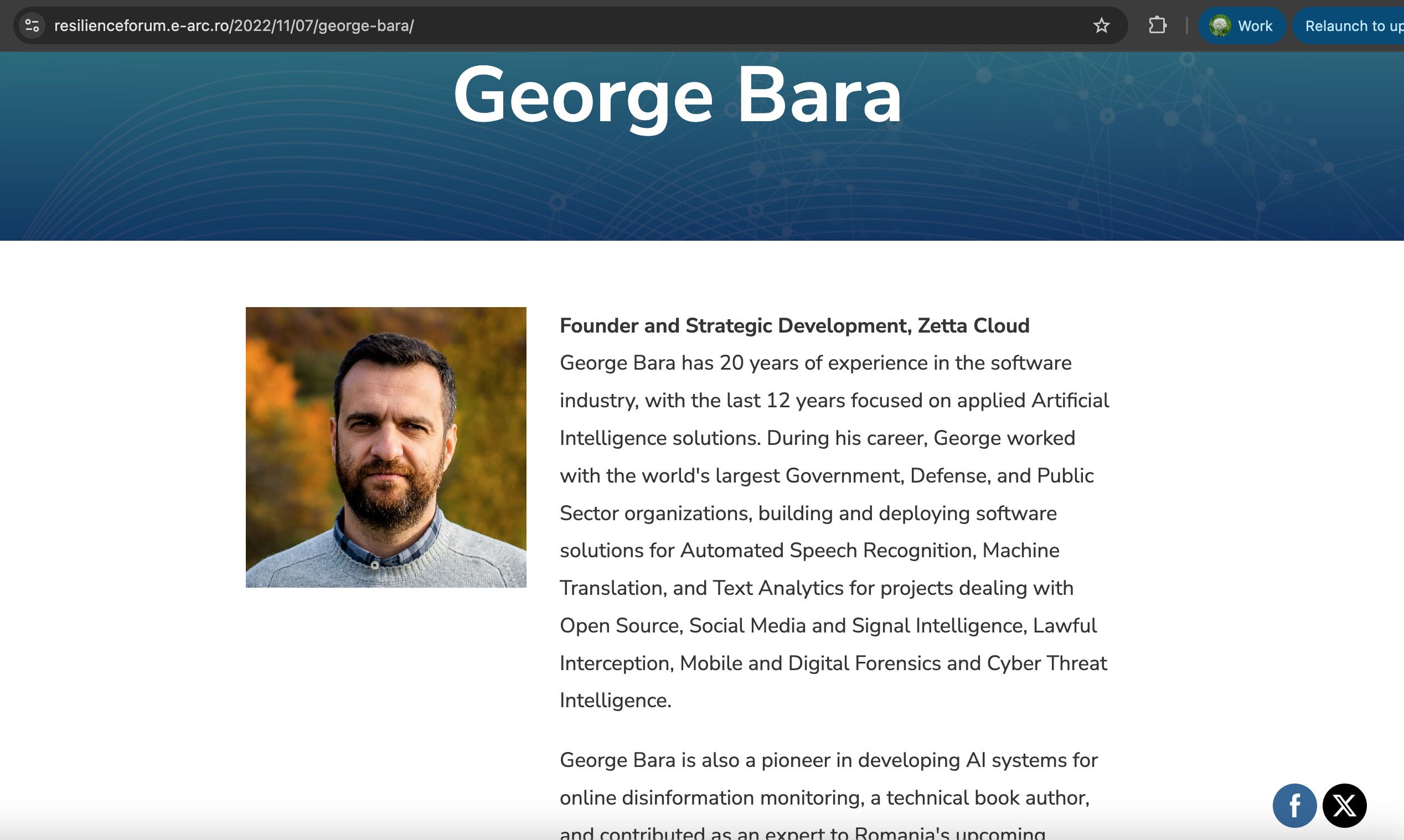 George Bara este, potrivit propriei prezentări de pe Linkedin, „cofondator și director al departamentului de strategie de afaceri, dezvoltare de afaceri, vânzări, parteneriate și marketing la ZETTA, liderul european în domeniul inteligenței artificiale sigure și adaptabile pentru apărare, servicii de informații și forțele de ordine”.