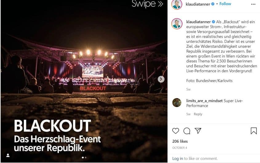 Acum, pe lângă posibila amenințare a unei întreruperi în livrarea de electricitate, Austria invocă de exemplu nevoia unei ecologizări a Armatei sau schimbările climatice. În Statele Unite, guvernul a lansat o campanie care, sub pretextul unei invazii zombi, pregătește populația pentru dezastre. Exemplele pot continua.