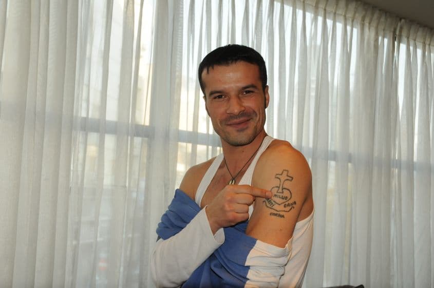 Pe brațul stâng are un tatuaj cu o cruce și o inimă înăuntrul căreia scrie Milud.