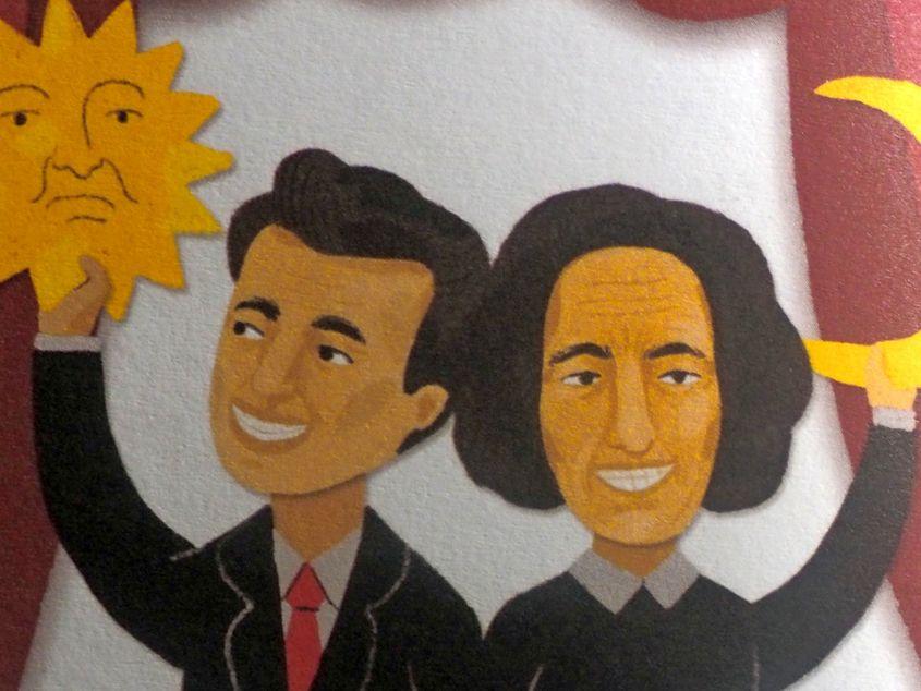 Într-o bulă roșie apar chiar și niște versuri de aducere aminte cântate de fostul poet de curte Vadim Tudor, ajuns după Revoluția din ’89 candidat la alegeri. De frică să nu iasă nebunul, l-am votat toți cu foc pe Iliescu, remember? Iată un fragment de odă închinat sinistrei: