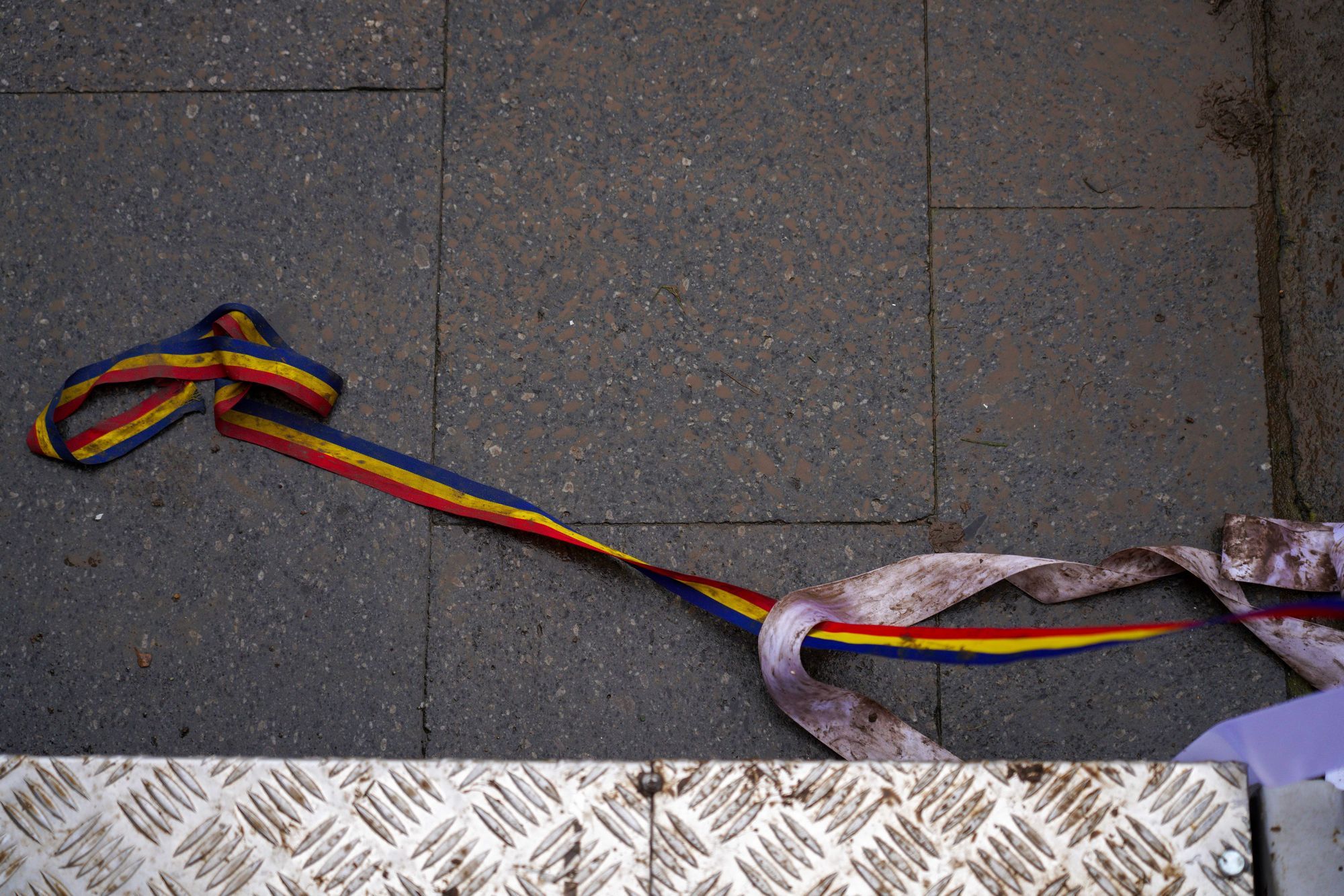 Cordonul tricolor care despărțea aleile din curtea Catedralei de la Alba Iulia, călcat în picioare de manifestanți. Foto: Raul Ștef