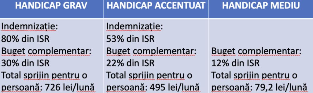Astfel se ajunge în situația în care cineva încadrat, în baza unui certificat de handicap, în grad mediu, să primească un sprijin financiar din partea statului de aproximativ 80 de lei pe lună. O persoană care suferă de pierderea parțială a vederii sau auzului poate fi încadrată într-un grad mediu de handicap.