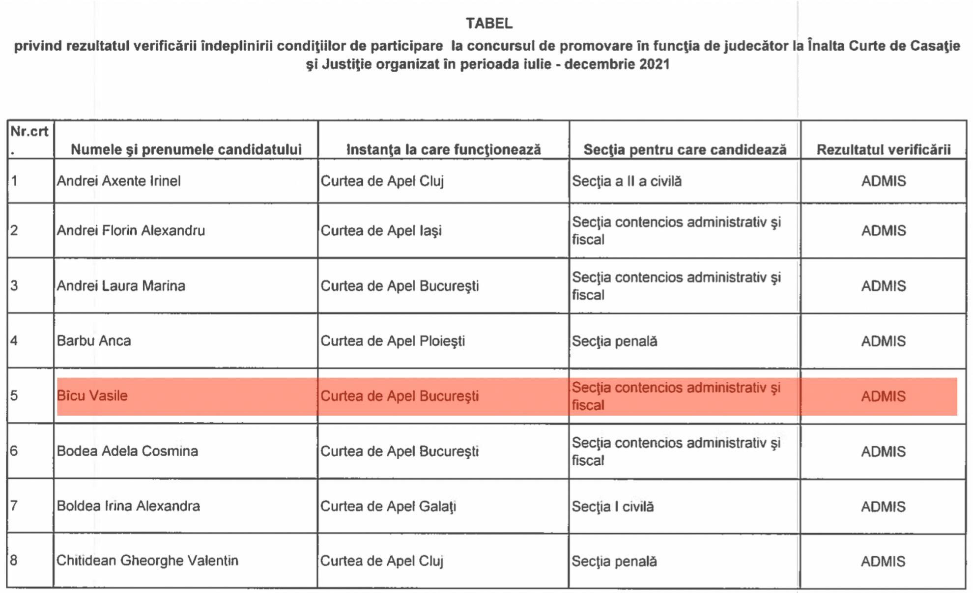 O altă încercare de promovare a avut-o în decembrie 2019, când a picat proba interviului. Bîcu a picat din nou, la interviul susținut în fața Consiliului Superior al Magistraturii (CSM), în aprilie anul acesta.