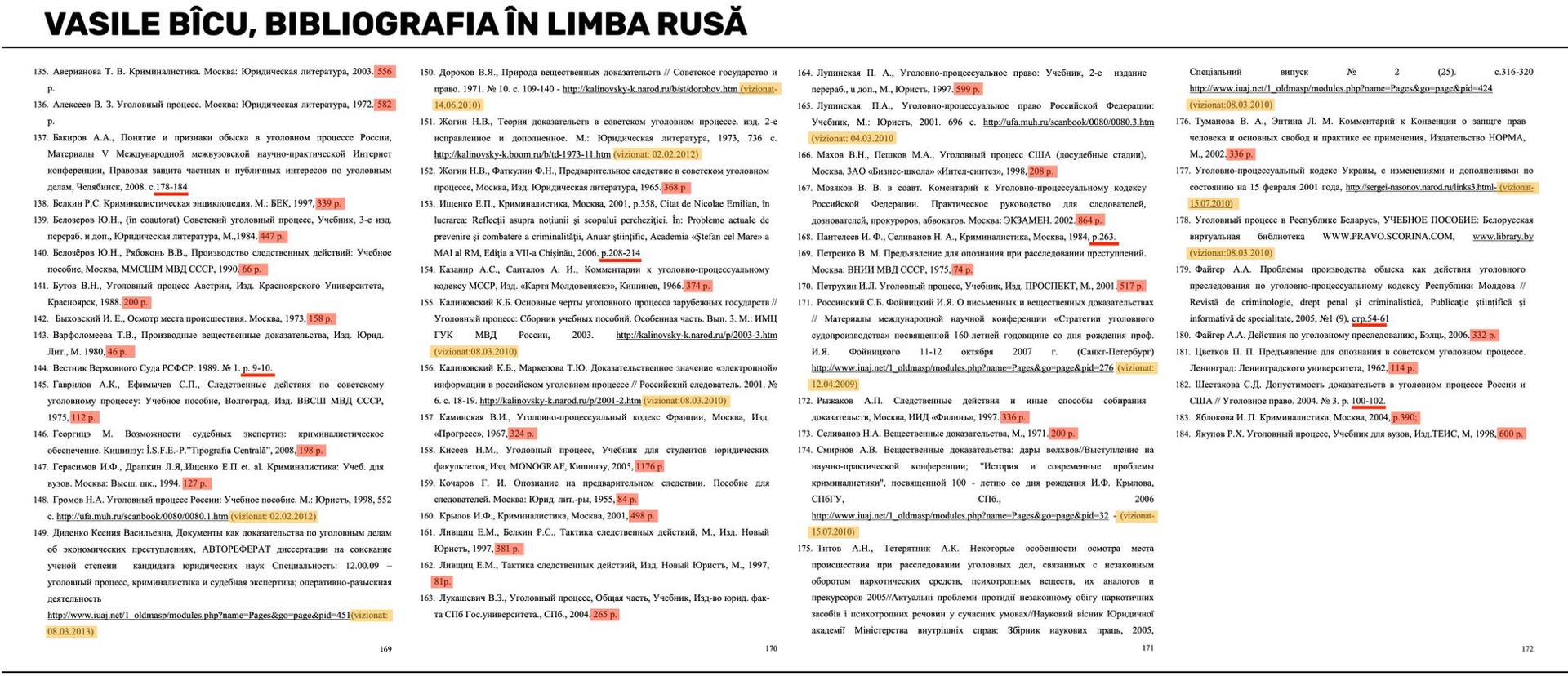 Ba chiar în dreptul unor lucrări scrise în limba rusă magistratul adaugă și link-ul de acces și trece, alături, mențiunea „vizionat” pentru fiecare în parte, indicând date de accesare plasate între 2009 și 2013. Acest lucru arată că respectivele lucrări au fost consultate cu cel puțin trei ani și cu cel mult șapte ani înainte de susținerea tezei.