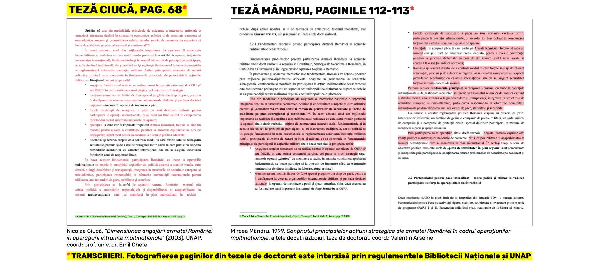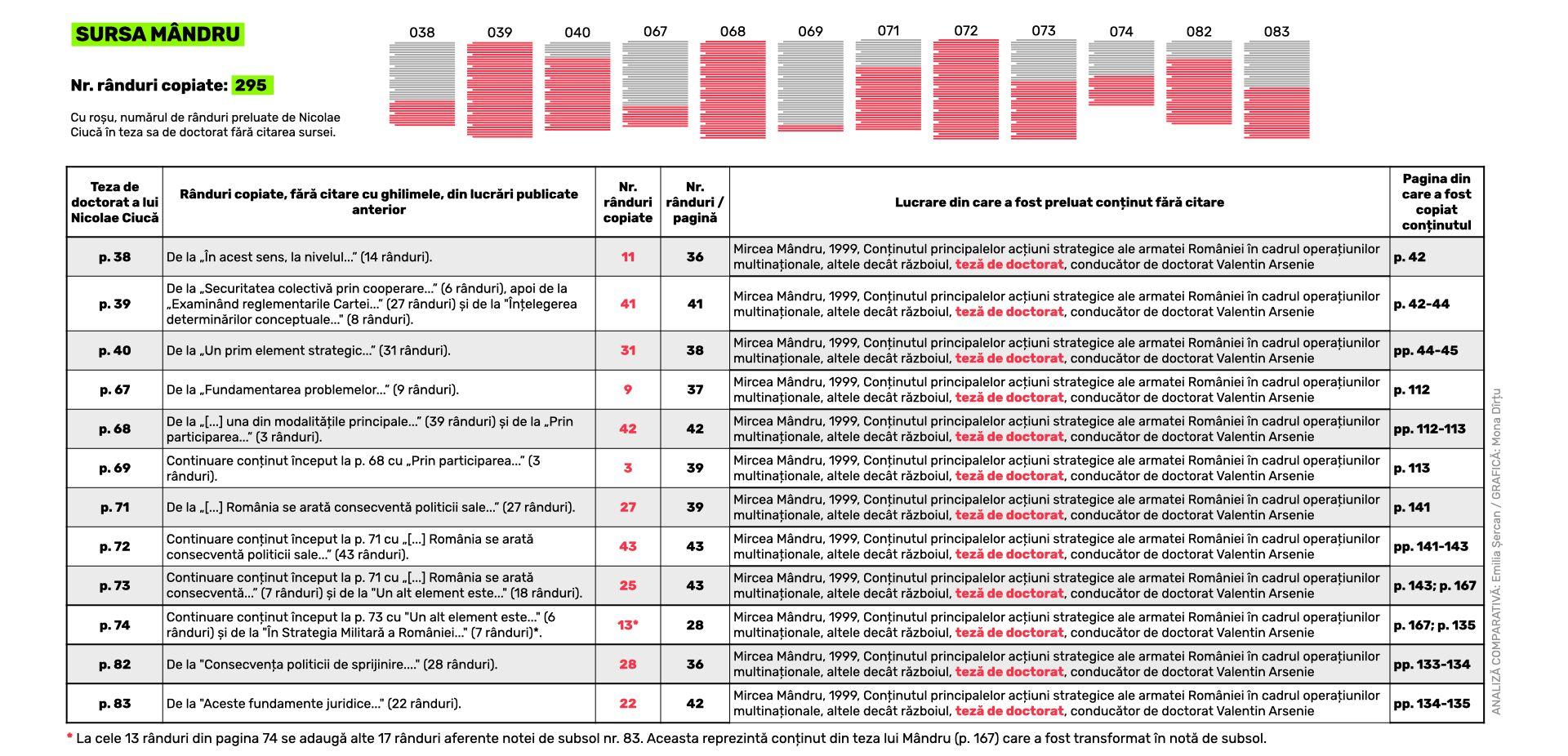 295 rânduri din teza lui Ciucă, copiate pe parcursul a nouă pagini, provin din teza lui Mândru.