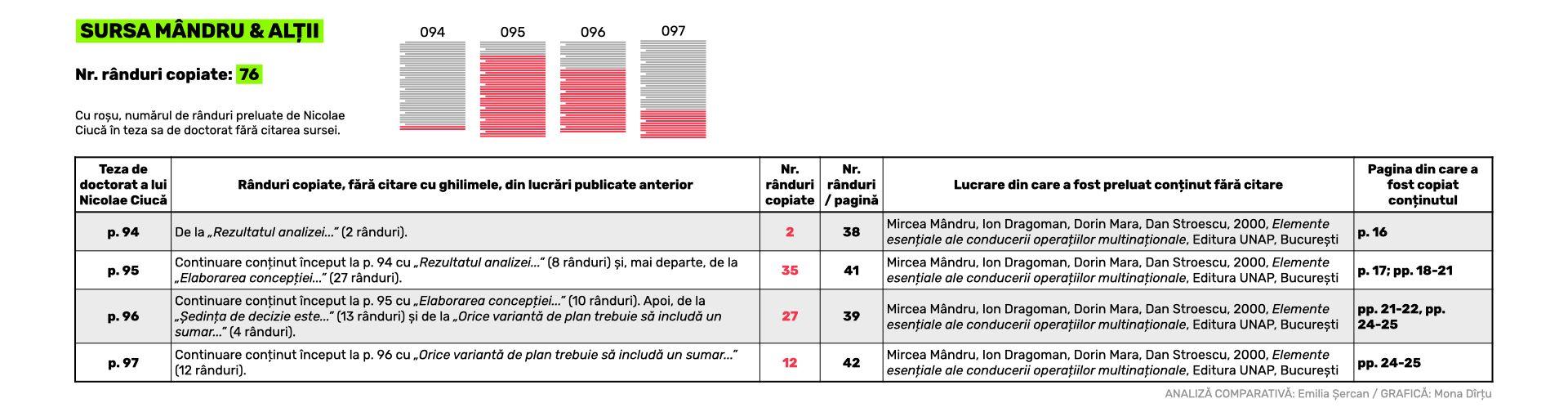 În doar patru pagini, totalizând 160 rânduri, Ciucă copiază fără atribuire 76 de rânduri.