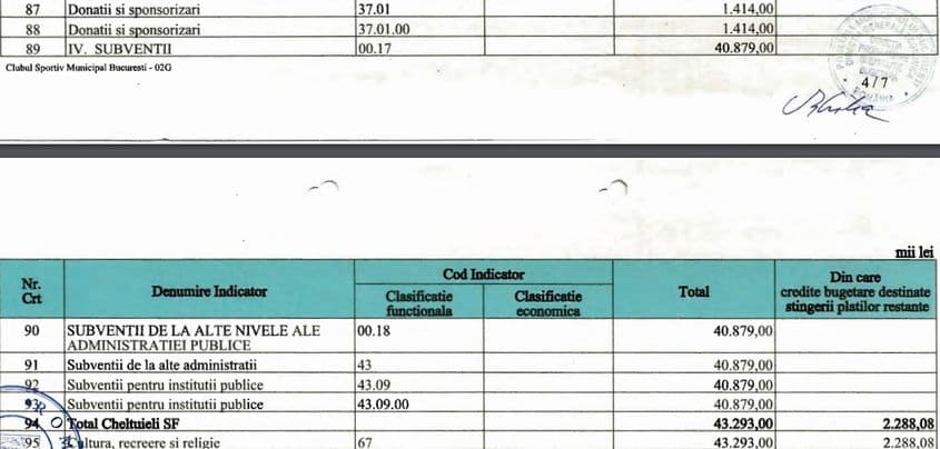 PressOne a solicitat PMB să prezinte defalcat și sumele pe care le alocă Clubului Sportiv Municipal București (CSM București). Câți bani merg, concret, către ce secții și ce procent din bugetul total al clubului este asigurat din bani publici?