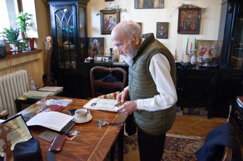 Vă dați seama: o sută de ani, bolnav, cu ochii infectați, că nici nu mai vedea deloc, neîngrijit… Ca la mănăstire! Și atunci ne-am hotărât să-l luăm la noi. A vrut să vină. S-a operat la ochi, transplant de cornee, acum vede să citească… Va rămâne la noi, e acasă de-acum…