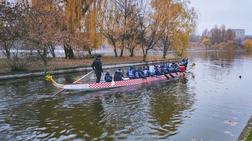 „Uite! Uite! Am reușit și eu să vâslesc!” Sunt cuvintele lui Marius, un băiat de 17 ani, care e pentru prima dată într-o barcă cu vâsle. După încălzirea înainte de efort și un mic tutorial despre cum ar trebui folosite vâslele, cursanții intră în dragon boat. O barcă lungă, unde 20 de persoane vâslesc de-o parte și de alta. La început, lui Marius îi e frică: are mobilitate scăzută în mâini, ceea ce face vâslitul complicat. Însă din momentul în care constată că se descurcă, devine foarte entuziasmat și ambițios.